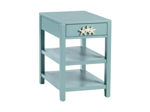Crestview Collection’s Grand Bay Chairside is an ode to beachside living with added functionality. Crafted from engineered wood, this accent