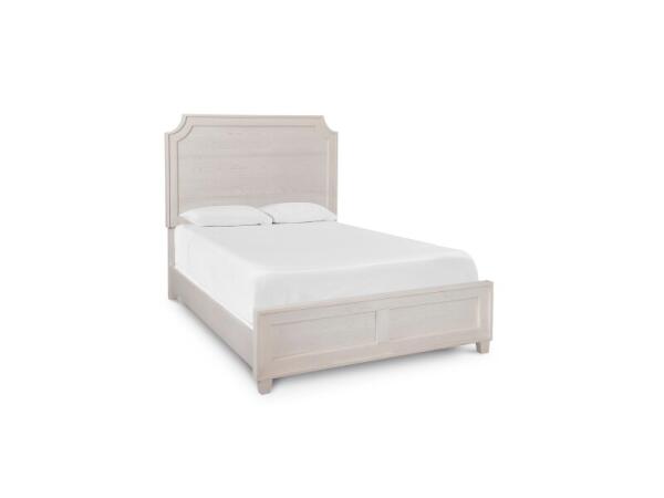 Wood panel bed with clean, modern lines in the Ventura collection's neo-traditional style. Available in Chalk Slate or Shell White finishes; foundation required.