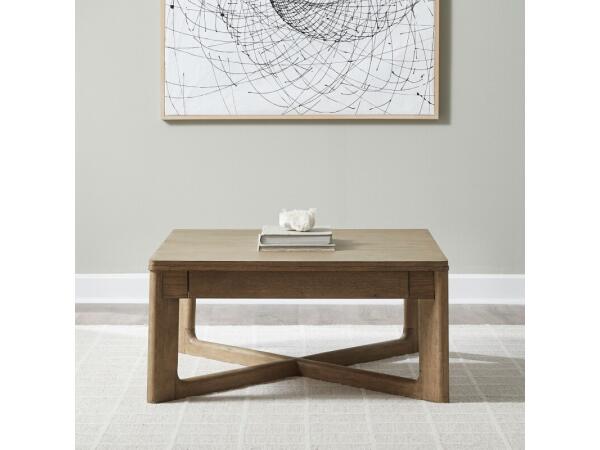 This square cocktail table combines style and function with an X-style trestle base and a hidden storage drawer. The drawer is built for longevity using French and English dovetail construction.