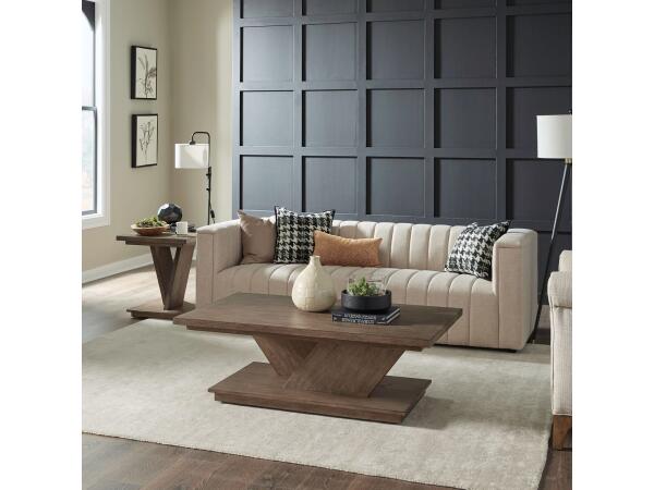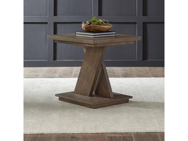 This contemporary end table showcases a unique criss-cross body design and a sturdy plinth-style base. An open bottom shelf provides convenient storage or display space for your living room.