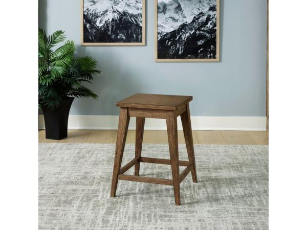 Crafted from pine solids with a Weathered Toffee finish, this Pinebrook Ridge console stool features a wooden seat, splayed tapered legs, and a comfortable footrest. Nylon chair glides protect your flooring.