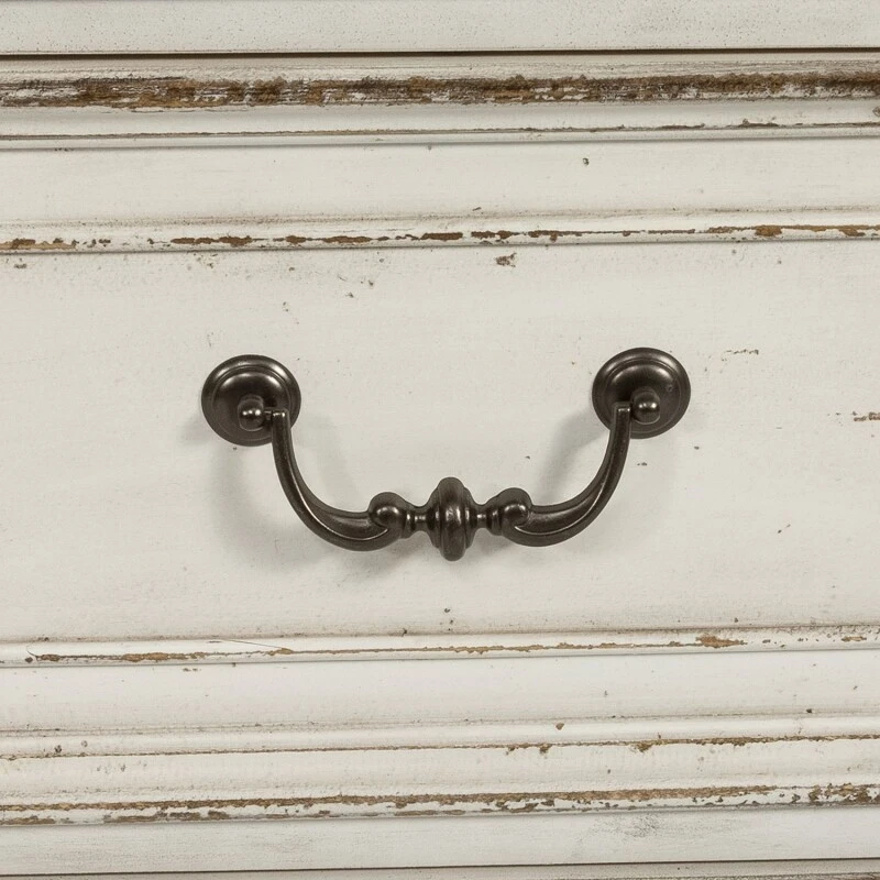 This 3-drawer bedside chest is the perfect way to accent your room with an effortless blend of European Traditional design. Weathered brown whitewash top paired with the antique white finish creates a truly unique look. Softness is added to the design with canted corners and rounded pilasters, accompanied by bead molding on each drawer front. The chest features a felt lined top drawer, cedar lined bottom drawer and bottom case dust proofing that is accented by custom antique pewter bail and knob hardware. With today’s modern technology in mind, users can enjoy the benefit of the incorporated charging station, featuring two USB ports, making multi device charging a breeze.