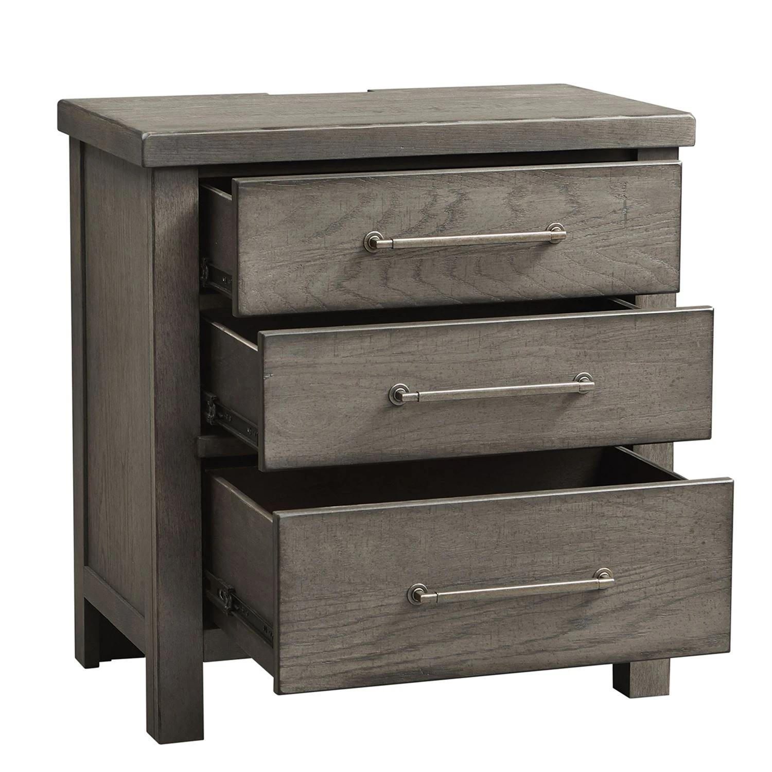 This night stand is more than just a surface to place your reading lamps, glasses or alarm clock. Night stands define the overall aesthetic and feel of your master bedroom or suite. This timeless farmhouse piece is constructed with poplar solids and knotty oak veneers, accompanied by a charming dusty charcoal finish with heavy distressing. Accented by unique washed brass elongated bar pull hardware, this night stand is sure to tie your room together, adding the perfect finishing touch.