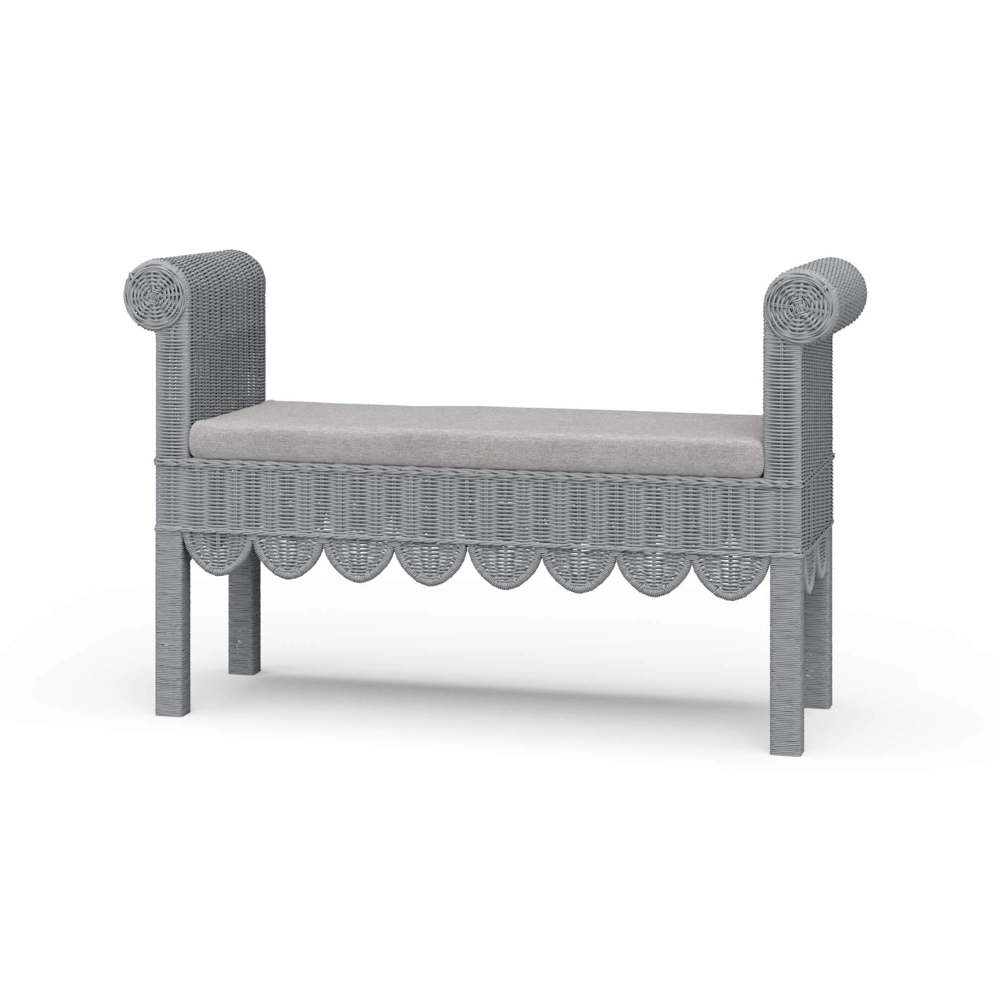 Newport Scalloped Rattan Bench