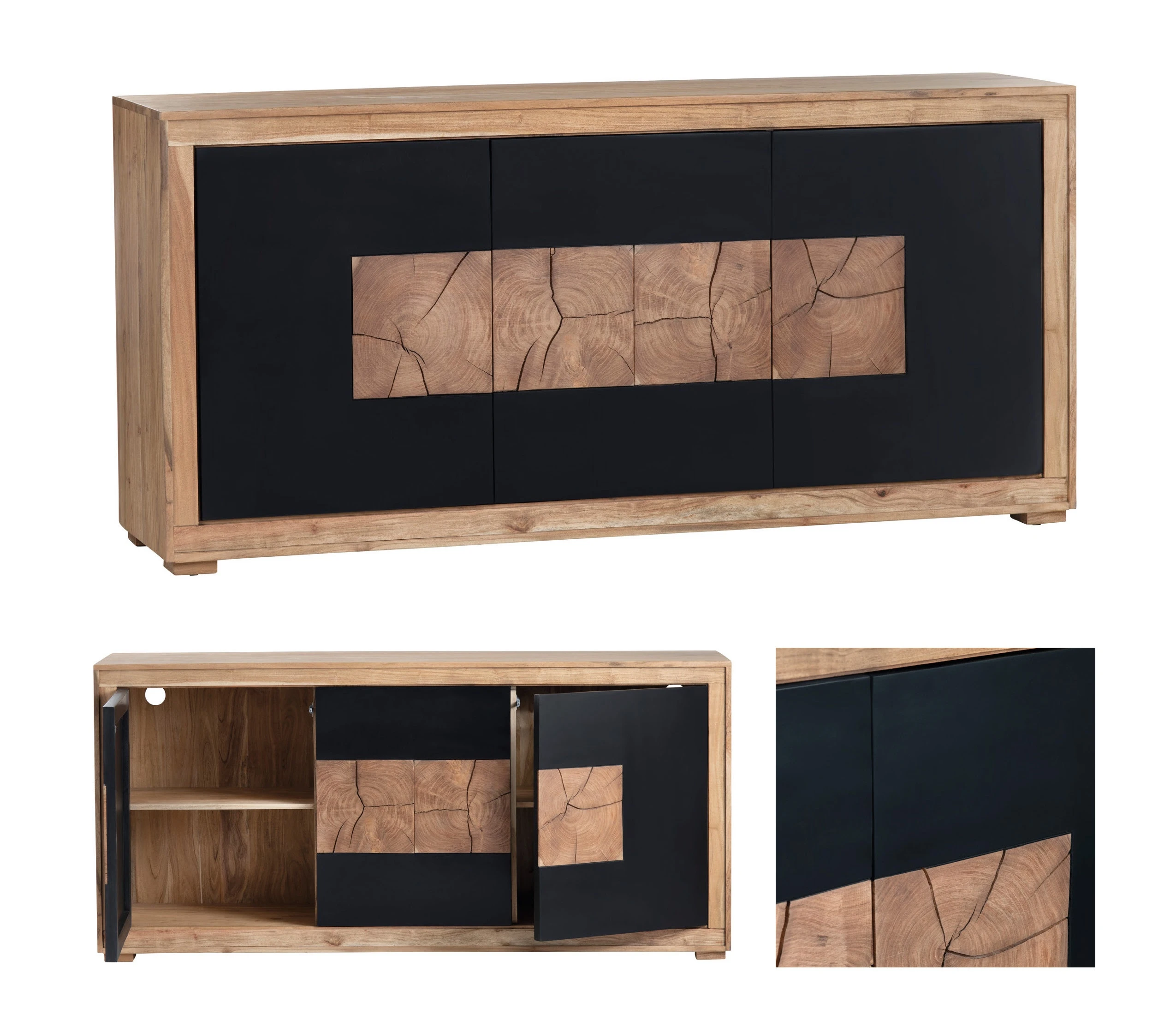 Crestview Collection’s Heartwood Four-Door Console is a perfect fusion of rustic charm and contemporary style. Crafted from solid mango wood, this rectangular console table showcases a striking contrast between rustic wood and sleek black-painted edging.