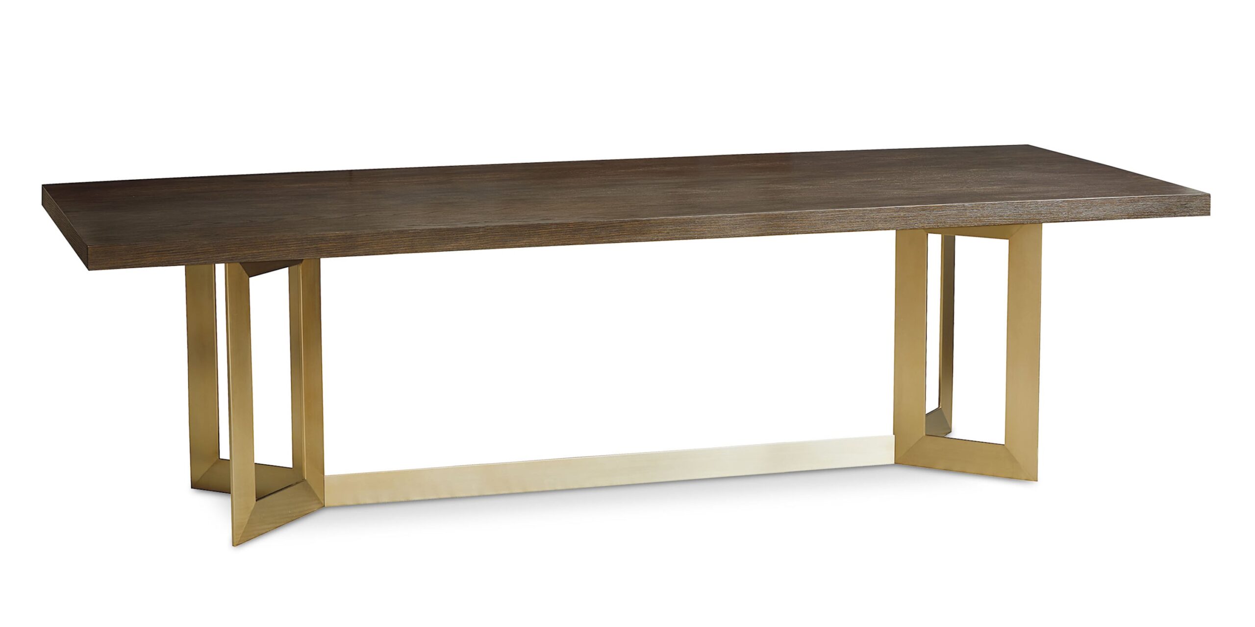 Bassett’s B MODERN makes it comfortable to bring modern glamour to everyday living. Available in Lyon Brown or Normandy Grey finish paired with a Champagne Brass or Brushed Stainless base. Seats up to 8.