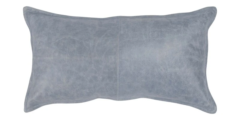A sophisticated look with a supple hand, our Dupont Leather Sea Fog Blue Lumbar Pillow Cover + Insert features a dyed and distressed genuine leather front with stitched detailing. Completed with a 100% cotton back, double stitched 1/2″ flange edge, and hidden zipper closure. Available in 2 sizes and 7 colorways as cover only or with a luxury down insert.