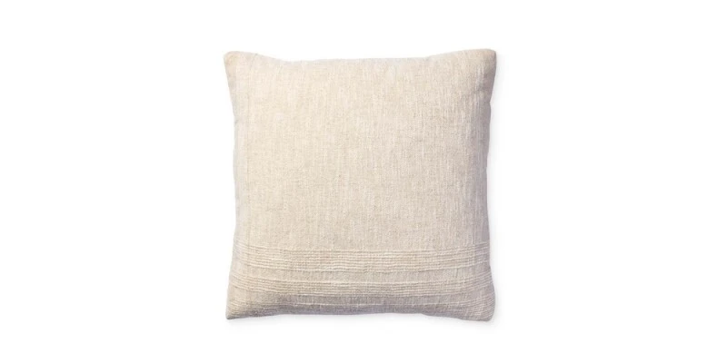 The handcrafted Novia pillow stuns with simple elegance. Full of texture yet soft to the touch, this serene cream and beige accent pillow accentuates any indoor space. The cotton, linen and viscose blend adds comfort while maintaining style.