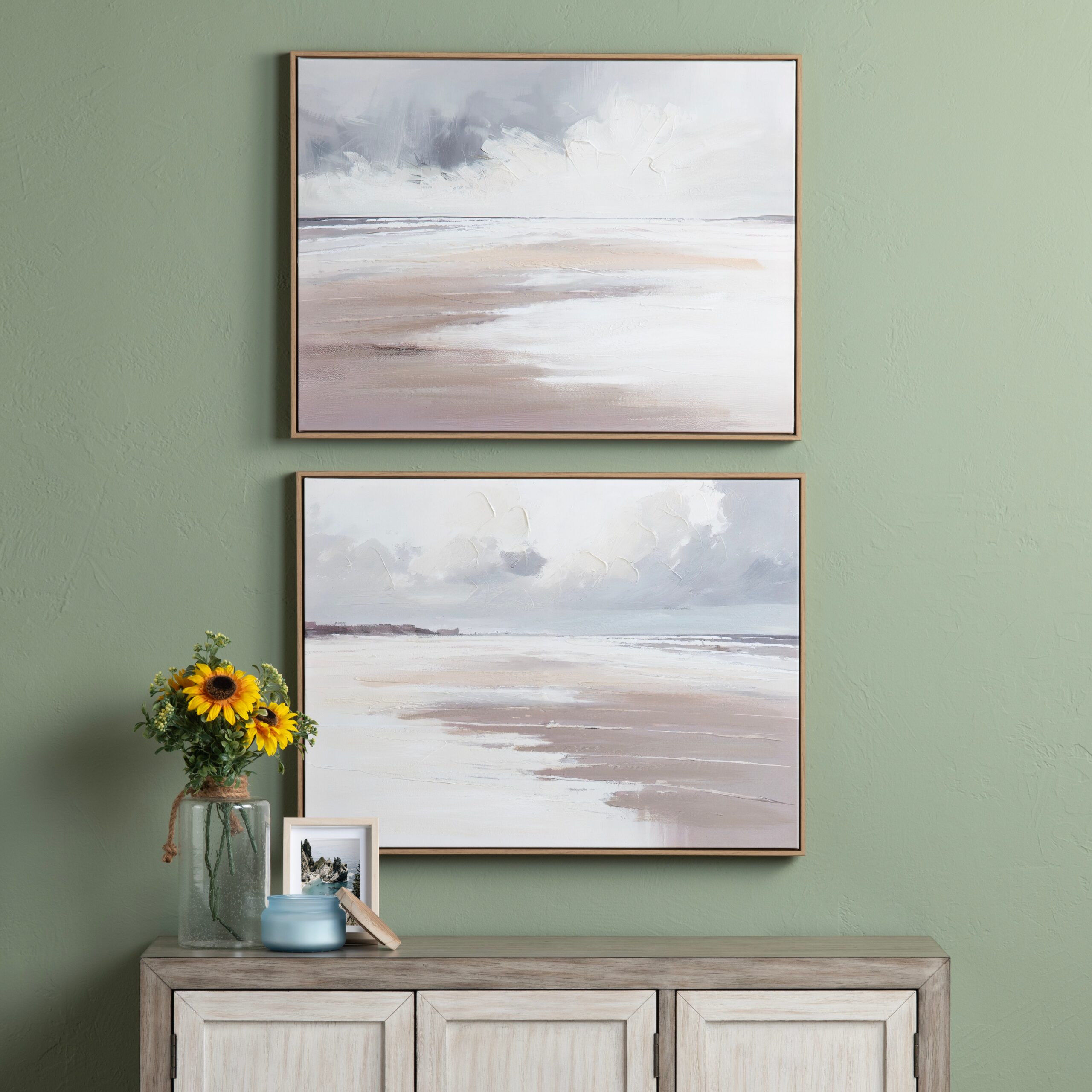 Add a touch of coastal elegance and charm to your home with the “Durham” set of two wall decor by Crestview Collection. Each 32×24″ piece showcases a stunning beachside landscape, where rolling waves crash onto a sandy shore beneath a dramatic, cloud-fill