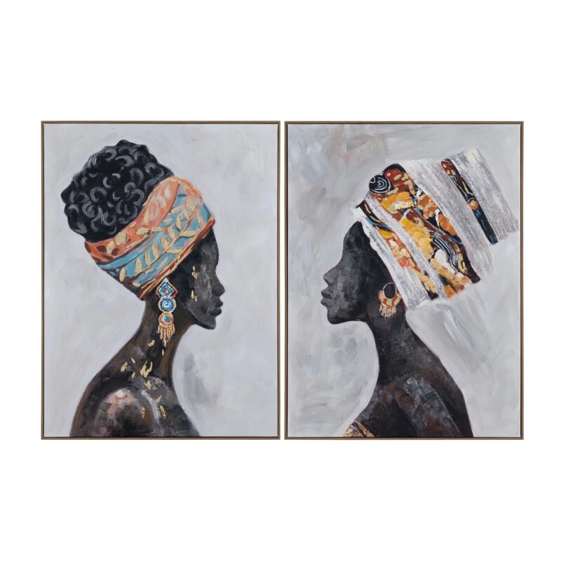 The set of two “Nala” wall art painting by Crestview Collection pays homage to the powerful concept of Mother Nature, embodying strength, grace, and resilience. Each artwork features the elegant silhouette of two women, adorned with vibrant, patterned fab