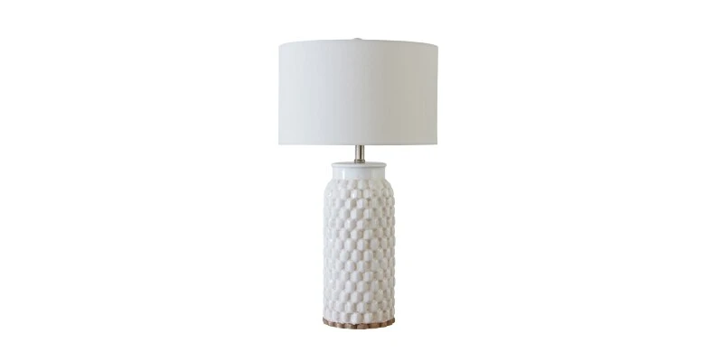 The two tone crackle finish and heavy geometric pattern on the Cassidy Table Lamp creates a subdued, yet intriguing texture that will bring a relaxed charm to any setting.