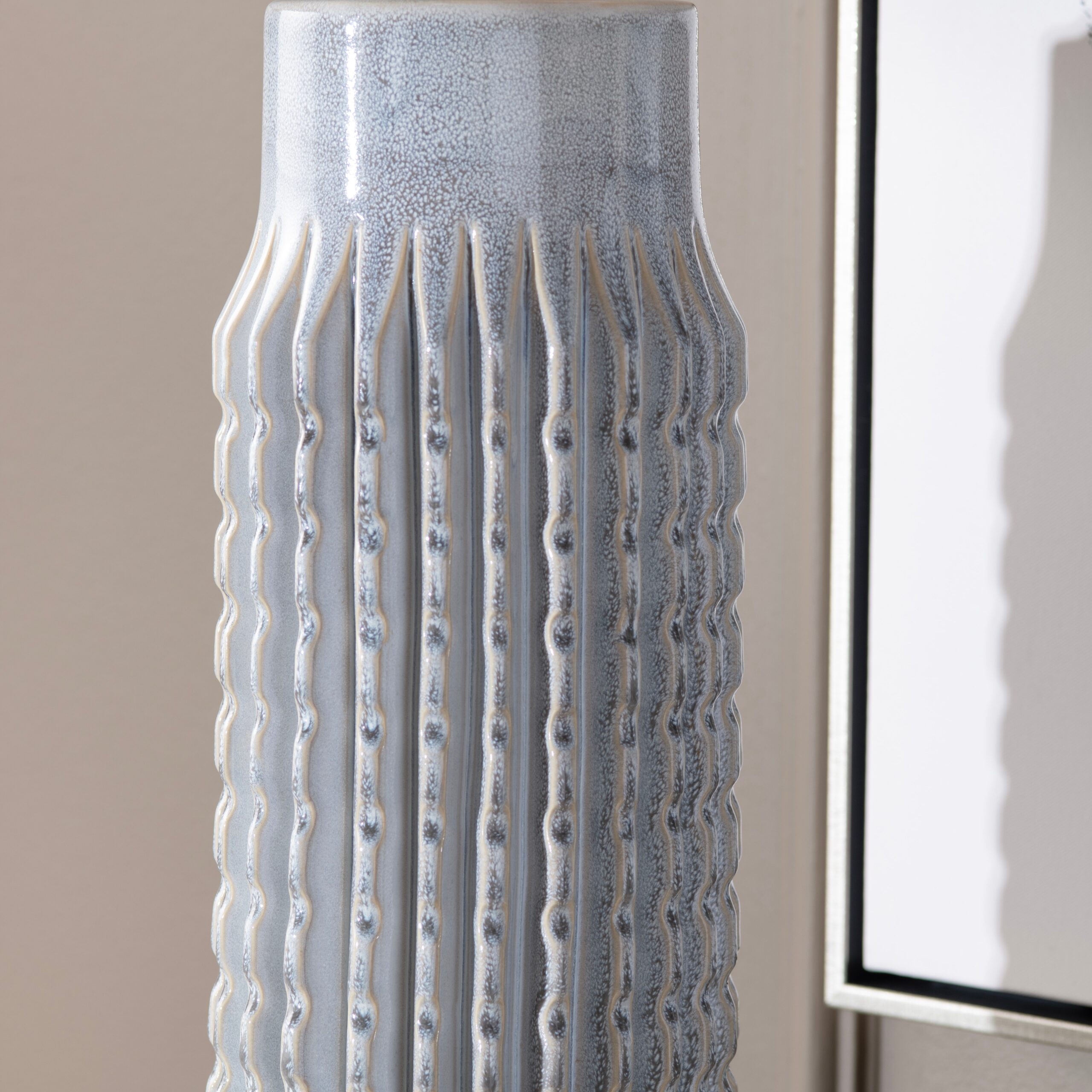 Available in a trio of versatile colors, the Crestview Collection Riverdale Table Lamp exudes artistic charm with its hand-molded ceramic body and stunning reactive glazes. This unique piece brings a vibrant yet refined presence to any room, making it a p