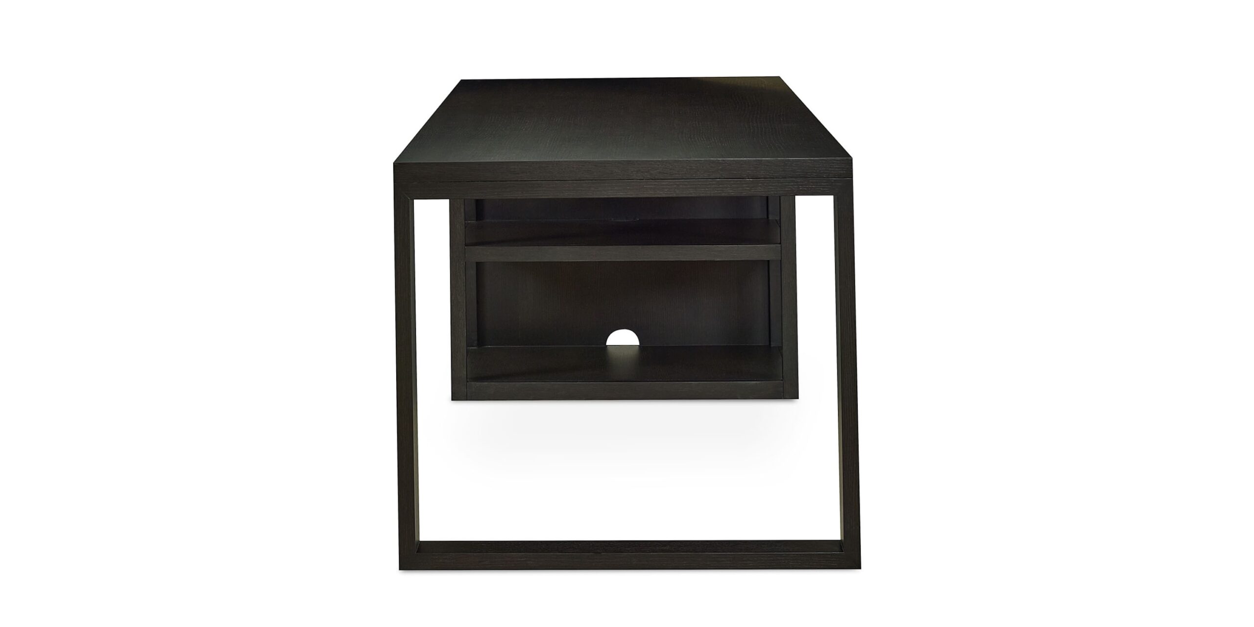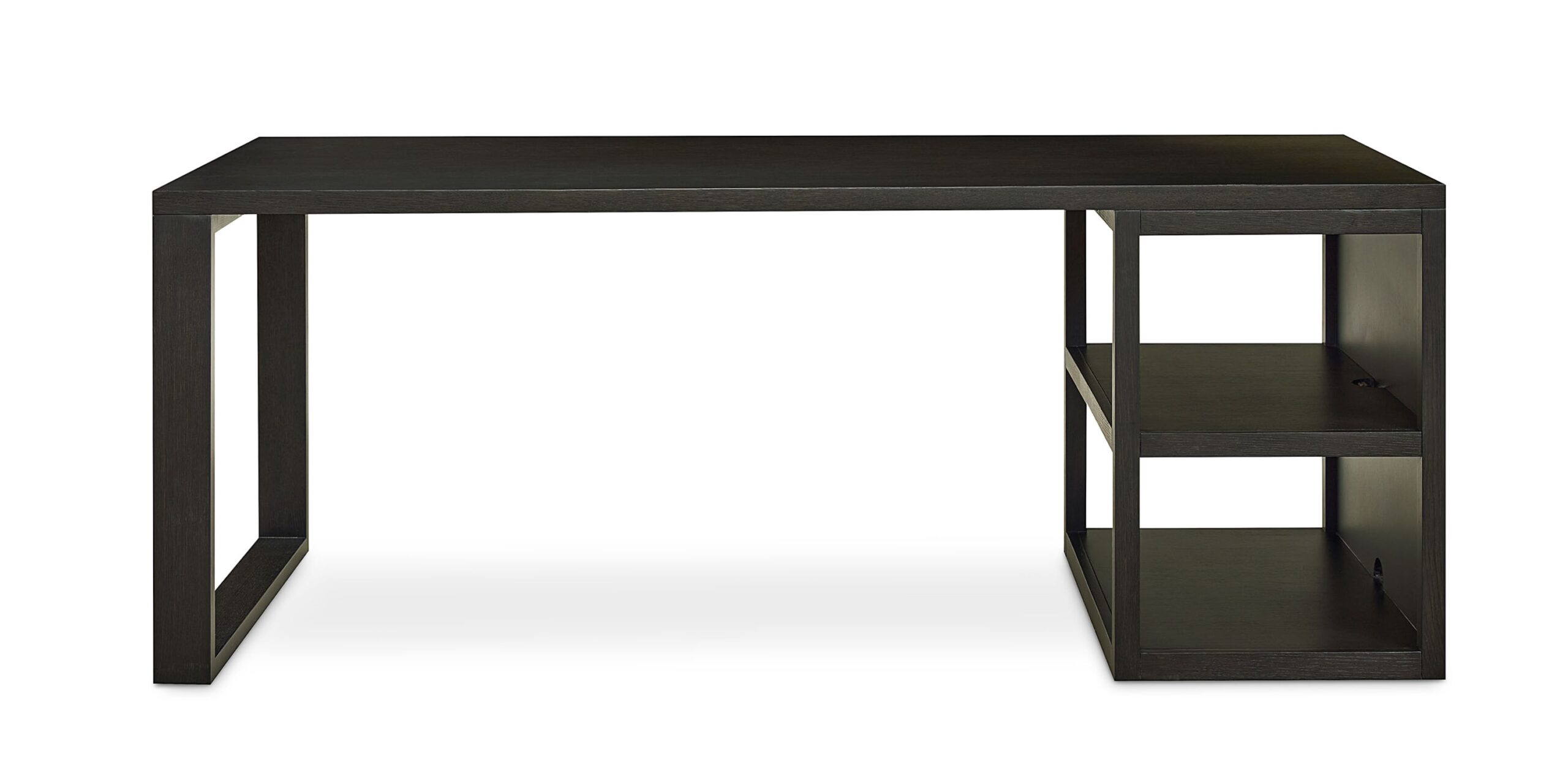 Crafted for the way you work and the way you live, the modern, straightforward lines of the HomeWork Peninsula Desk enhance your work-from-home lifestyle. Two open shelves beneath the desk keep all your necessities within reach, with cord holes to keep the wires tucked away. Finished on all sides, the quarter-sawn White Oak veneer is available in Dark Mocha, Natural, or Greystone finish. Mix and match with other modular pieces in the HomeWork Collection to complete your space. It’s still work, but with all the perks of home.