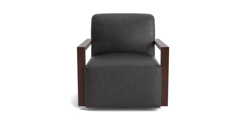 Exactly the modern chair to complete your room, the Creswell Leather Swivel Chair makes a subtly stylish impact. Wood arms in your choice of finish make this chair more than a slipper chair in style and comfort. A tight seat and back showcase your choice of fabric or leather. Available with round wood legs or swivel base.