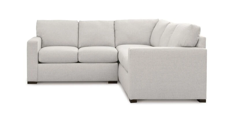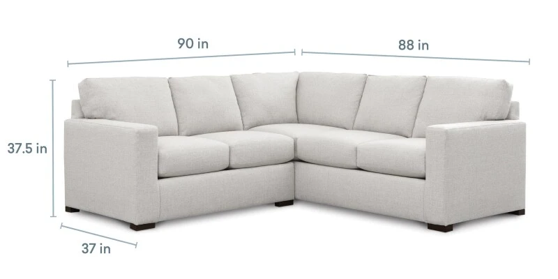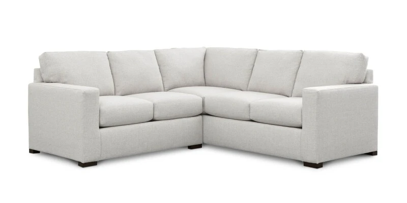 Right-sized for smaller spaces, the 2-cushion Anson L-Shaped Sectional creates a perfect spot for relaxing and cozy conversation. You’ll love sinking in to the soft, attached boxed back cushions and top-stitched seat cushions. Easygoing, transitional style shows in the clean-lined track arms and low block legs with Brindle finish. Choose from Canvas, Sisal, or Chrome Revolution fabric.