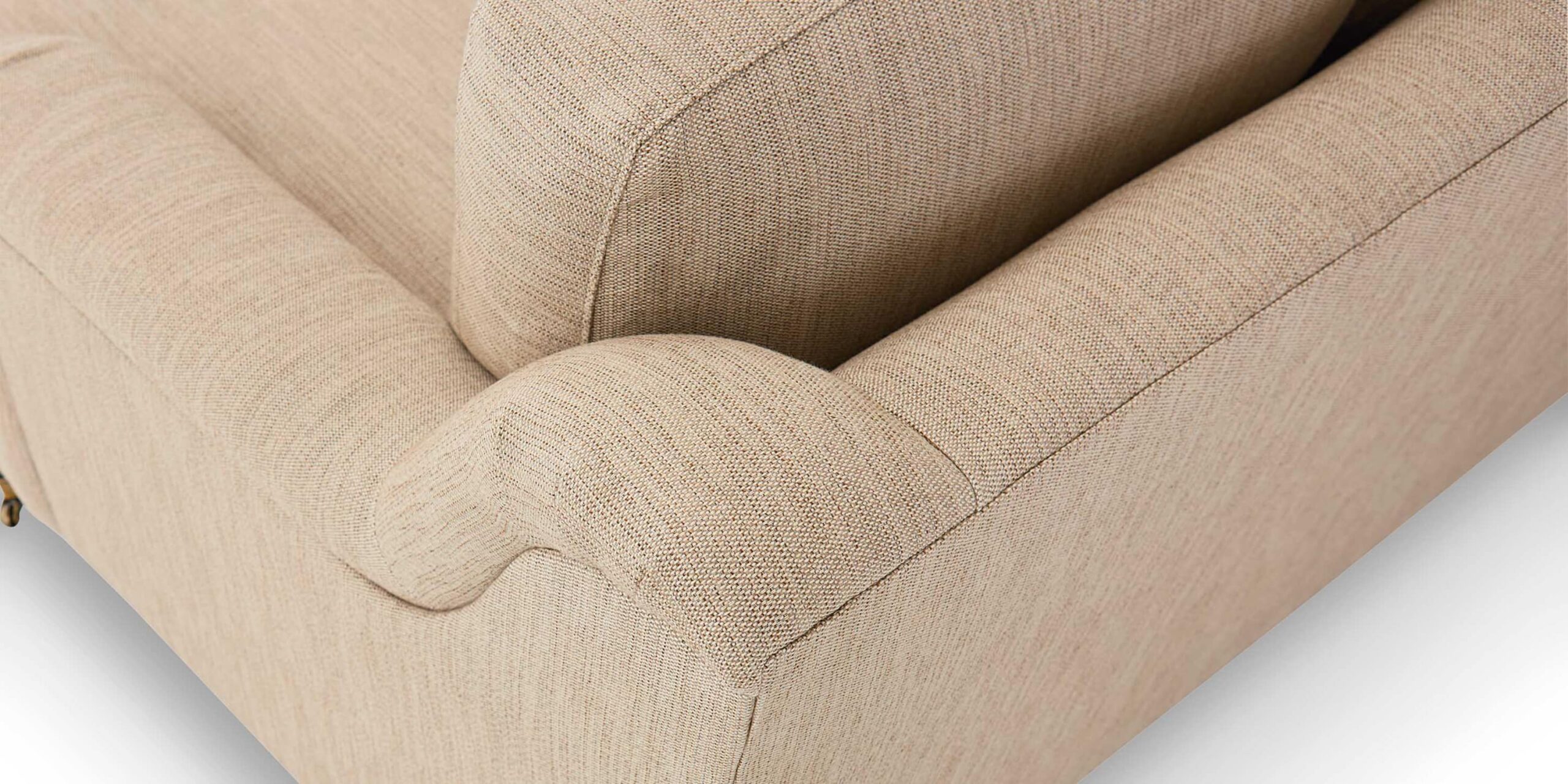 What we love best is often a combination of what was and what can be, and our Stockten English Arm L-Shape Sectional is a perfect example of that. Rooted in heritage design features like blend down cushions and pleated Charles of London arms, the L-shaped Stockten design expands your comfort expo-sectionally. Strategically placed tapered wooden legs are offered in two finishes, with front legs also available in a choice of metal ferrule and casters in brass, bronze, and nickel. Tailoring details for the Stockten sectional are as pictured, but all customizing options are available in-store: variation of sectional pieces, welting, contrast welting, and a full array of designer upholstery fabrics. A Stockten ottoman is also available in-store.