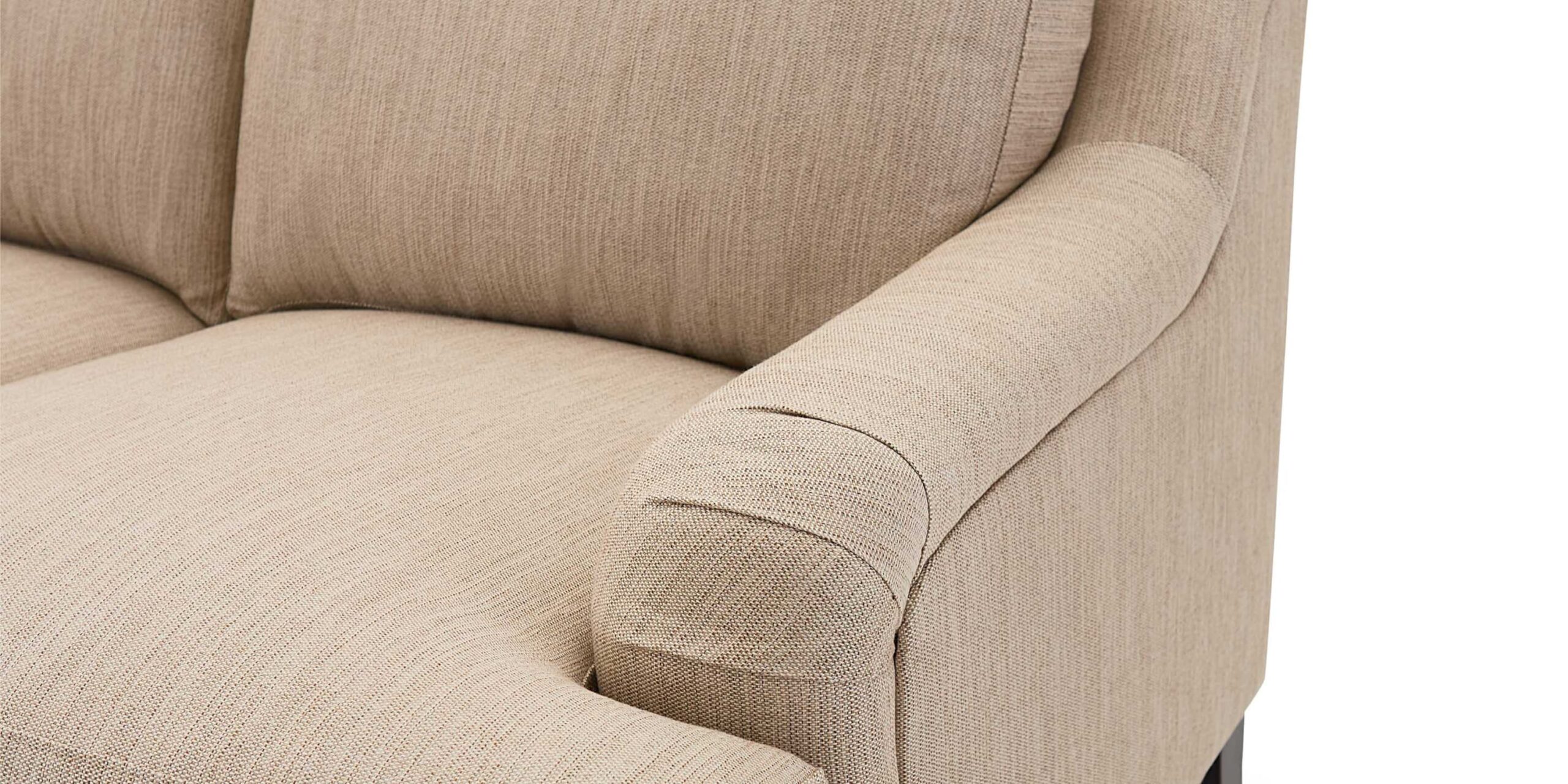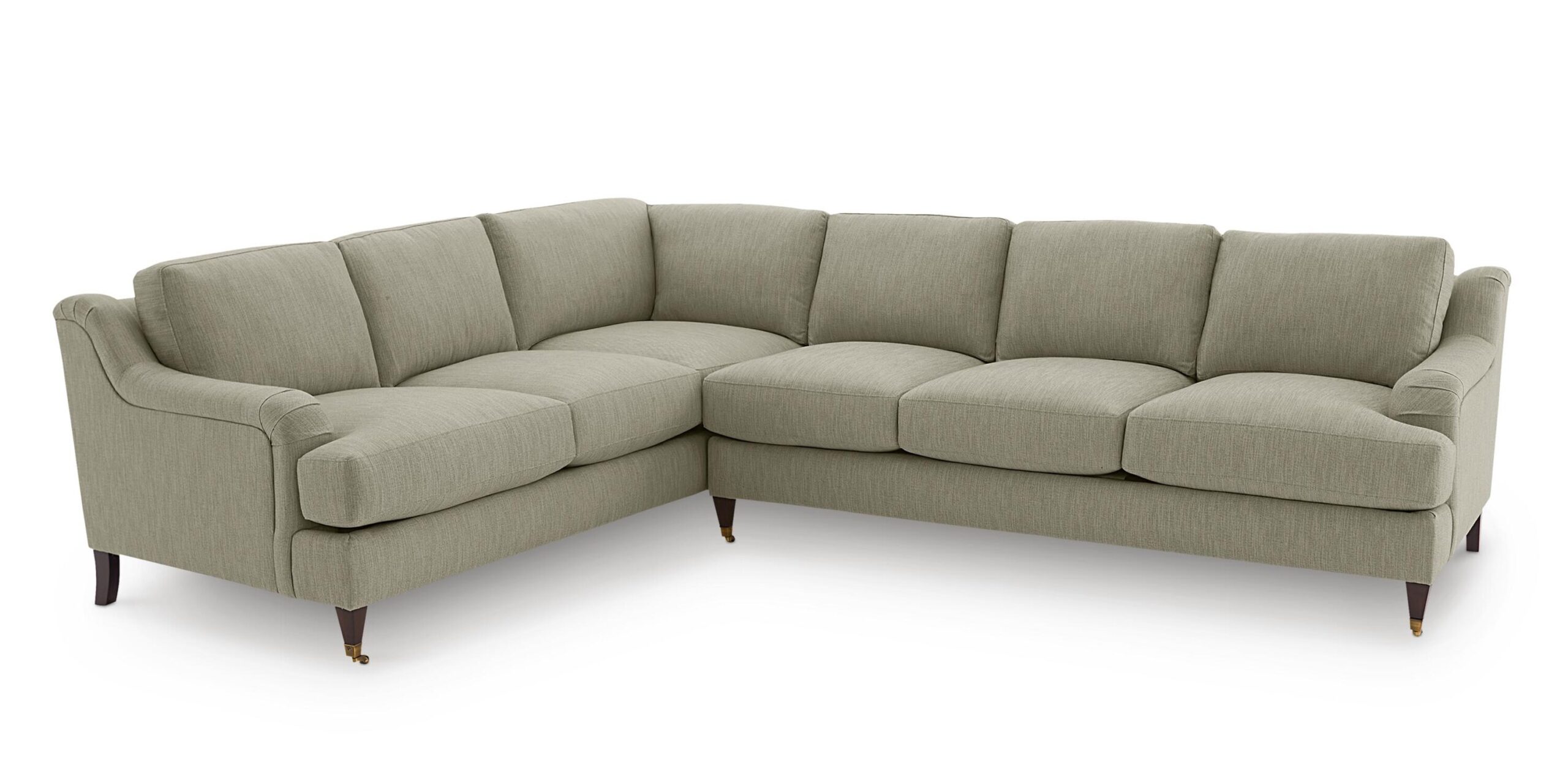 What we love best is often a combination of what was and what can be, and our Stockten English Arm L-Shape Sectional is a perfect example of that. Rooted in heritage design features like blend down cushions and pleated Charles of London arms, the L-shaped Stockten design expands your comfort expo-sectionally. Strategically placed tapered wooden legs are offered in two finishes, with front legs also available in a choice of metal ferrule and casters in brass, bronze, and nickel. Tailoring details for the Stockten sectional are as pictured, but all customizing options are available in-store: variation of sectional pieces, welting, contrast welting, and a full array of designer upholstery fabrics. A Stockten ottoman is also available in-store.