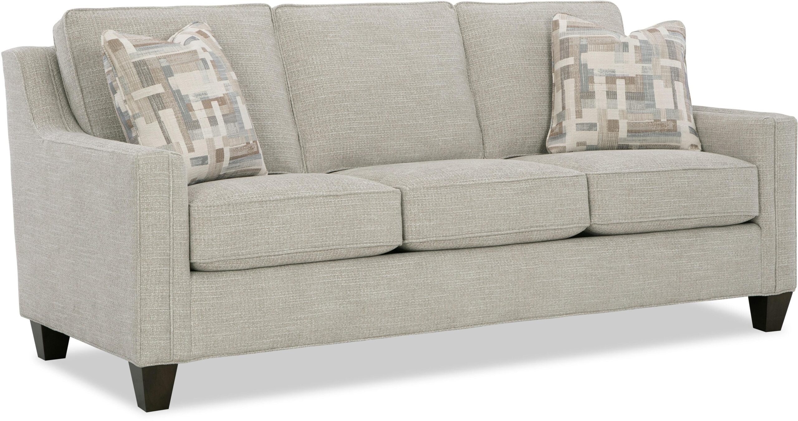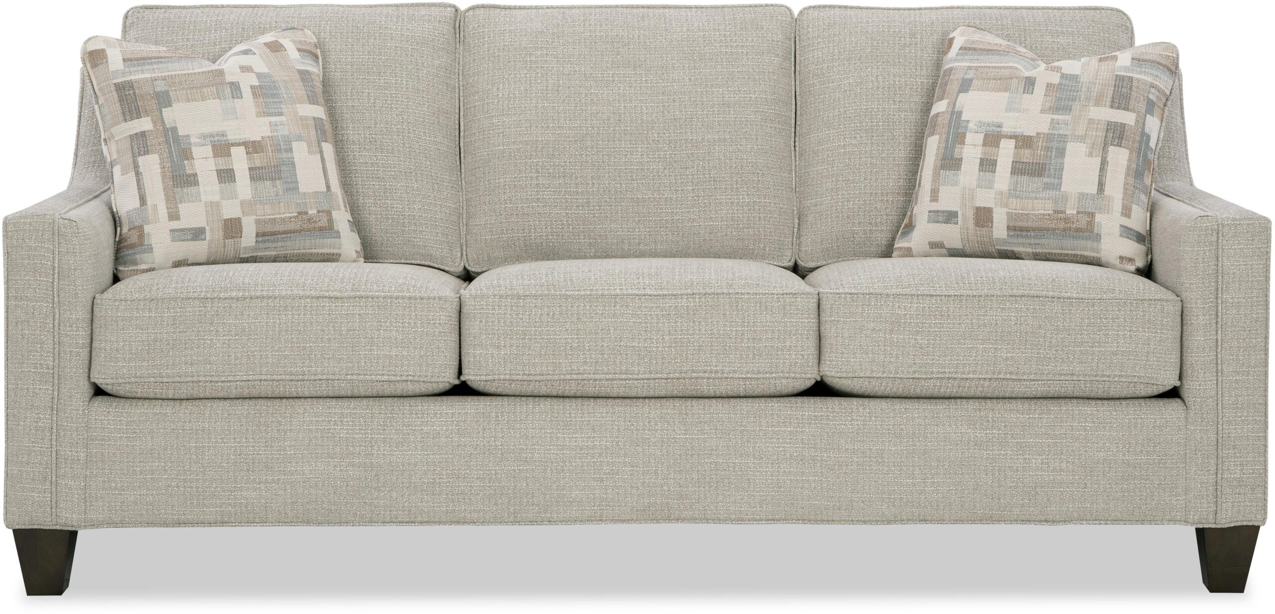 This mid-sized sofa has some beautiful details to admire. It features a welted double track arm with a sloping shape from back to front as well as simple tapered legs. Also important to note are the taller-than-average loose back pillows that allow a person of any height to be comfortable. Also available are the matching loveseat, chair, ottoman and queen sleeper. Also available as a sleeper 746150-68.