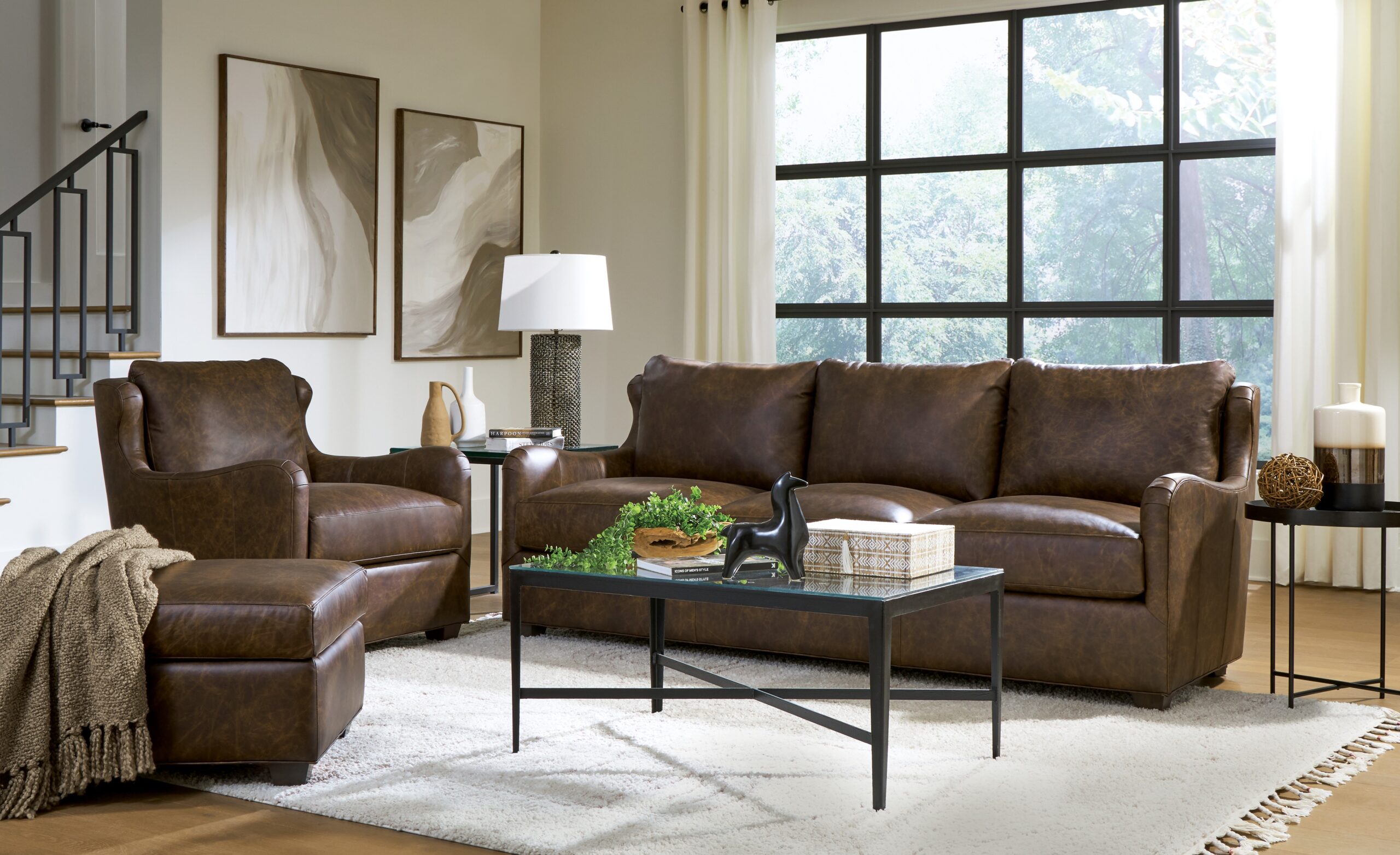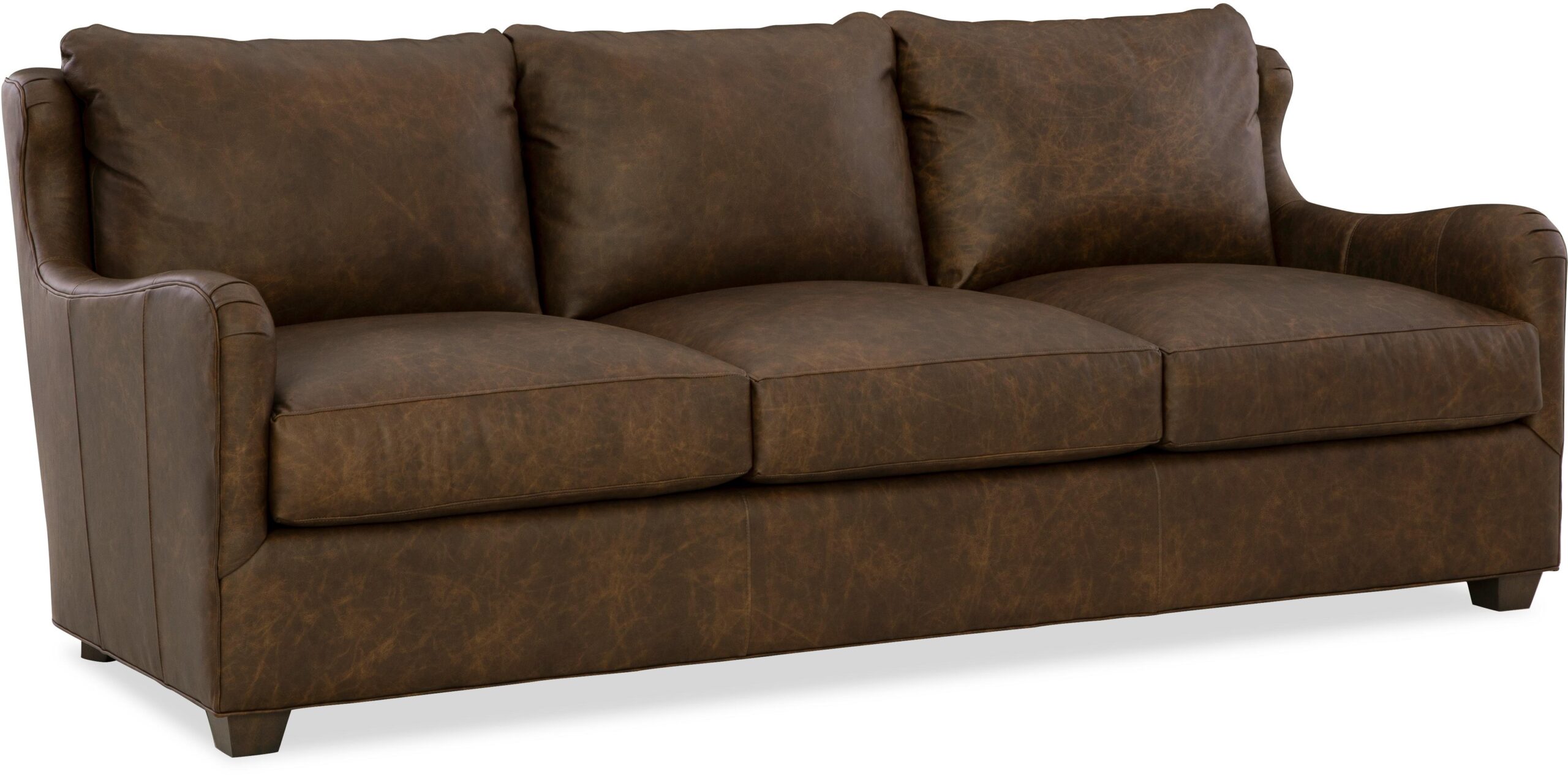 Beautiful organic shaping gives this leather sofa a casual, welcoming detail that is sure to inspire. Curvy English arms flow gracefully into the sculpted wing back. Plush Blend-Down Coil seating and attached back pillows wrap you in relaxing comfort. Standard with 2 pairs of Luxdown toss pillows. Also available are the matching loveseat, chair, and ottoman.