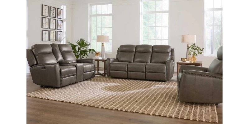 With its classic design, deluxe cushions, and state-of-the-art features, the Douglas Leather Power Reclining Sofa brings sophisticated comfort to any living space. Two zero-gravity recliners with power adjustable headrests deliver the ultimate in personalized comfort – supporting your body with a seemingly weightless feel and pressure relief that promotes deep rest and relaxation. Thoughtful details, like nailhead trim, generous proportions, and USB-A and USB-C ports built into the power controls, make the Douglas sofa a standout in both its design and functionality.