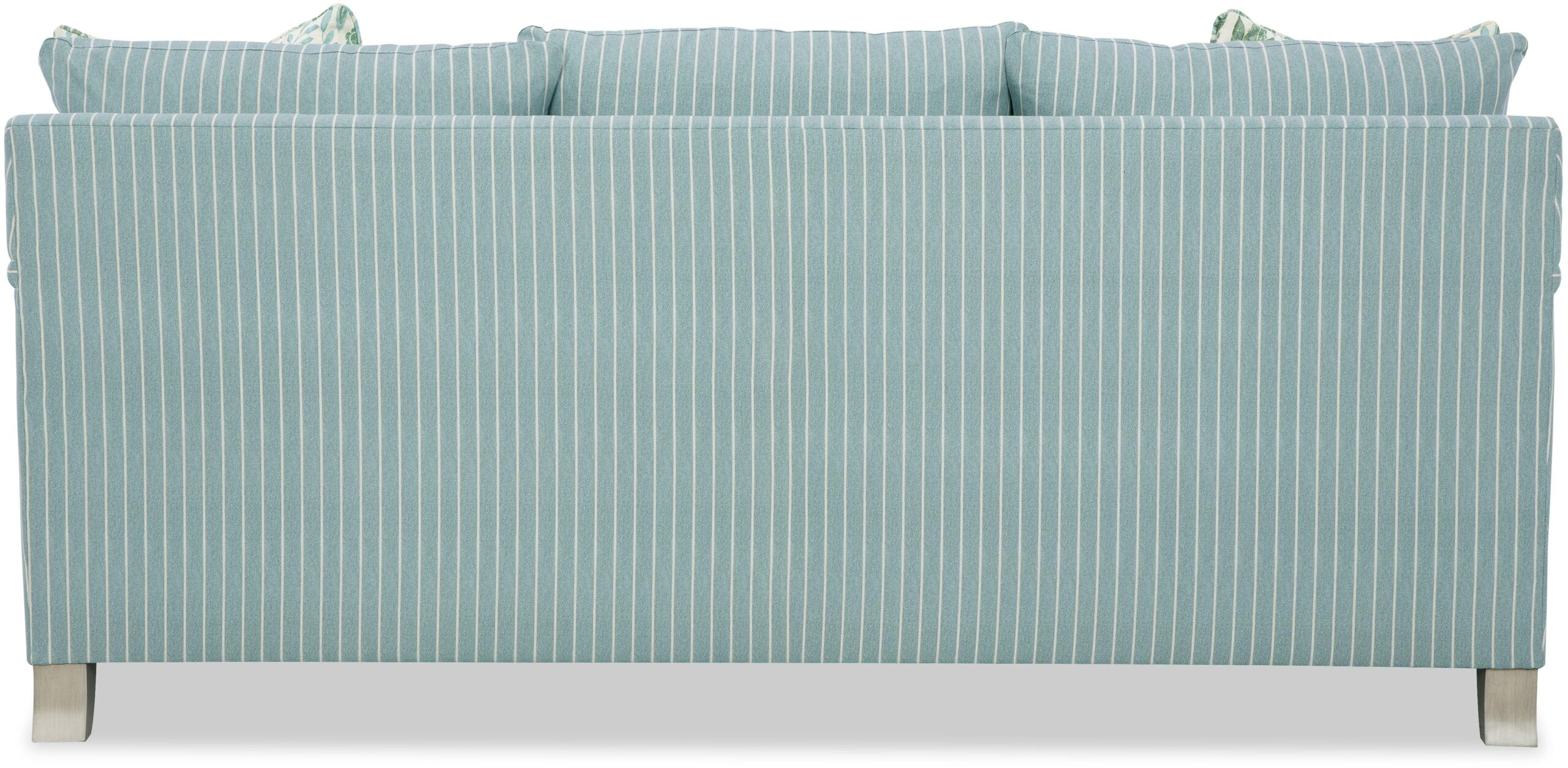 At only 81 inches wide, this style is a perfect fit in smaller spaces, but the seating area still has plenty of room for everyone. The uniquely slender cap arms give a tailored, finessed look, while the French seaming and casual back pillows feel casual and welcoming. This style features our Super Soft Blend Down cushions and backs as well as flanged LuxDown toss pillows for the ultimate in billowy softness. Also available as a bench-seat sofa. Also available are the matching loveseat, chair, swivel chair, and ottoman. Also available with a removable slipcover as style 9437.