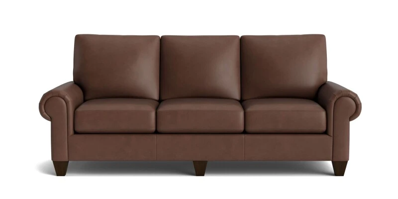 Bassett’s True Custom® Leather Large Panel Arm Sofa employs an enhanced arm panel to accentuate the extra curvy arms of this cushy sofa. With soft, well-padded curves, your classically contemporary sofa can provide the substantial comfort you yearn for while still clearly speaking your style language. Upholstered in your choice of luxurious Bassett leather and cushioned to your comfort, you’ll enjoy seating that fits you now and smooths into a well-loved companion over time. Also available in a sleeper version with a queen standard innerspring mattress.