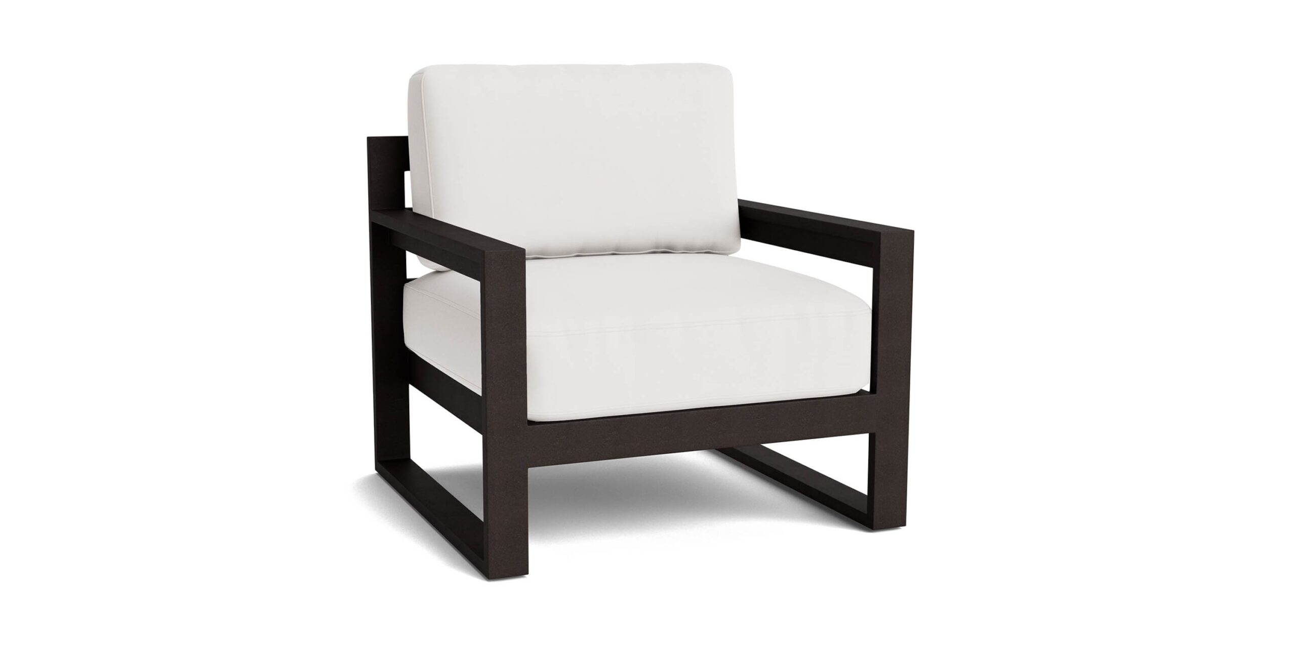 Generously sized for lounging comfort on a broadly sleek aluminum base, the Bonavista Track Arm Lounge Chair pairs famously well with both itself and the other seating in the Bonavista Collection. Its low, modern back leaves room to enjoy the view as you settle back in the cushion comfort you prefer. Built in the USA of commercial-quality aluminum and further customized with your choice of finishes and outdoor fabrics, your sophisticated outdoor living space will endure season after season, year after year. This chair is also available with Slope Arm and Arched Arm styles.