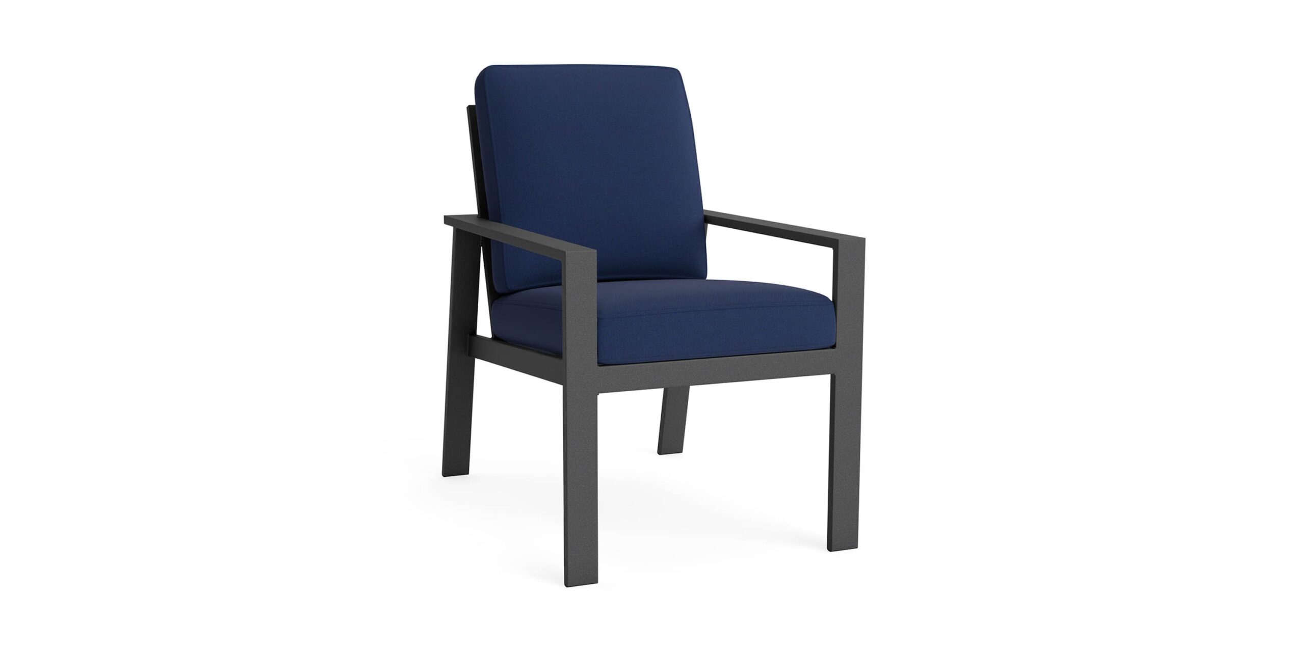 With Morris Dining Chairs grouped around your outdoor table, every evening meal can be punctuated by the whispering breezes of the golden hour. Comfort is essential for that kind of lingering, so the soft sling fabric seat deck and back provide support for substantial cushions. The Morris Dining Chairs are perfect partners for our Bonavista dining table, or use a pair as multi-purpose accent chairs in almost any setting. Angled transitional-modern lines are created of durable aluminum to provide season after season of al fresco enjoyment. Select the powder coat finish and outdoor fabric that turn your backyard getaway into the ultimate oasis of escape.