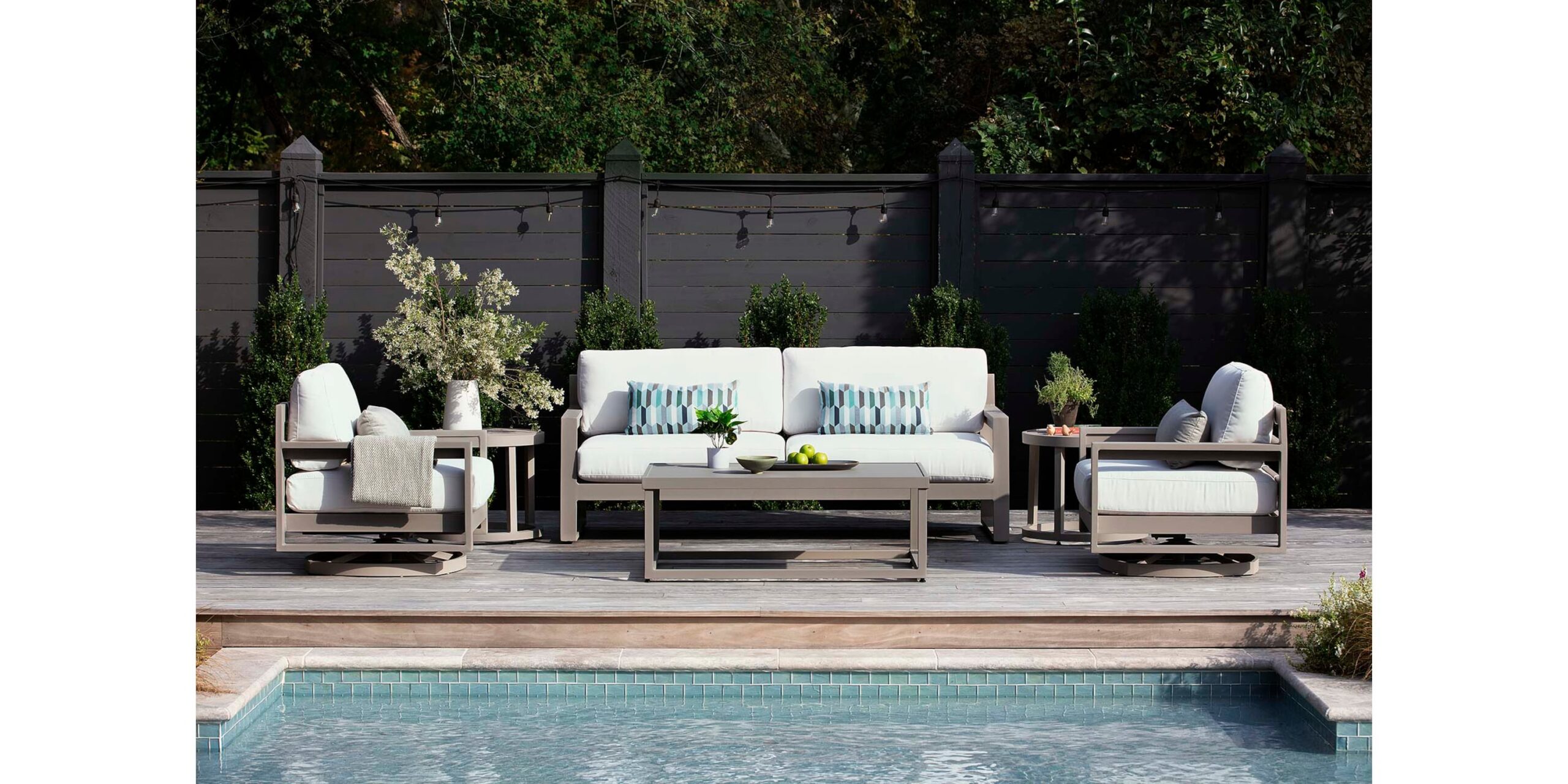 Anchor your outdoor oasis with the sleek lines and indoor comfort of our Bonavista Outdoor Track Arm Sofa. The Bonavista’s 100% American aluminum frame is built in Alabama by Bassett artisans who understand the durability needs across our many climate zones. Couple this homegrown American craftsmanship with the custom capabilities of a collection that offers 6 frame finishes and dozens of outdoor performance fabrics, and your outdoor living space will be truly resort-worthy. Take your personalization even further with your choice of seat cushion firmness and seaming details.