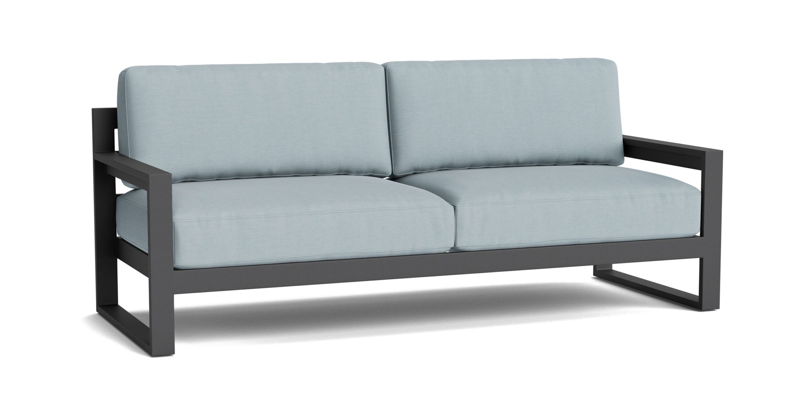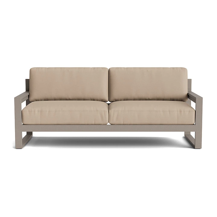 Anchor your outdoor oasis with the sleek lines and indoor comfort of our Bonavista Outdoor Track Arm Sofa. The Bonavista’s 100% American aluminum frame is built in Alabama by Bassett artisans who understand the durability needs across our many climate zones. Couple this homegrown American craftsmanship with the custom capabilities of a collection that offers 6 frame finishes and dozens of outdoor performance fabrics, and your outdoor living space will be truly resort-worthy. Take your personalization even further with your choice of seat cushion firmness and seaming details.