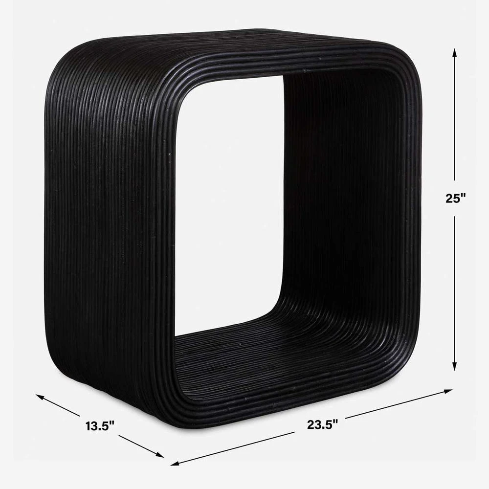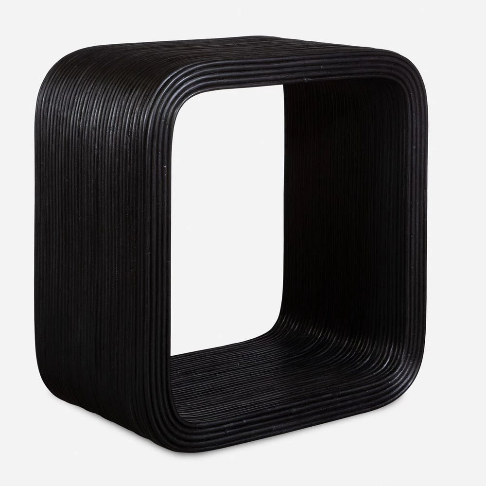 This side table seamlessly blends modern design with natural elements. This cube-shaped table features sleek natural rattan in a black finish that adds a contemporary touch to any room.