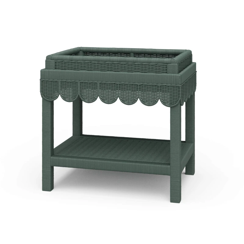 Scallop Rattan Side Table W/ Tray