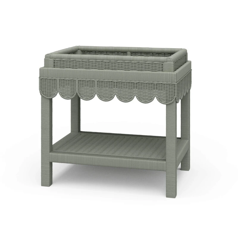 Scallop Rattan Side Table W/ Tray