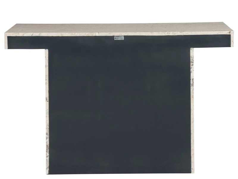 The Daxton Console Table stands out with its T-shaped silhouette, carved entirely from White Travertine. Its design is characterized by angular lines and sharp, cool edges, presenting a piece that exudes a minimalist yet bold aesthetic, perfectly suited for contemporary spaces that embrace clean, architectural forms.